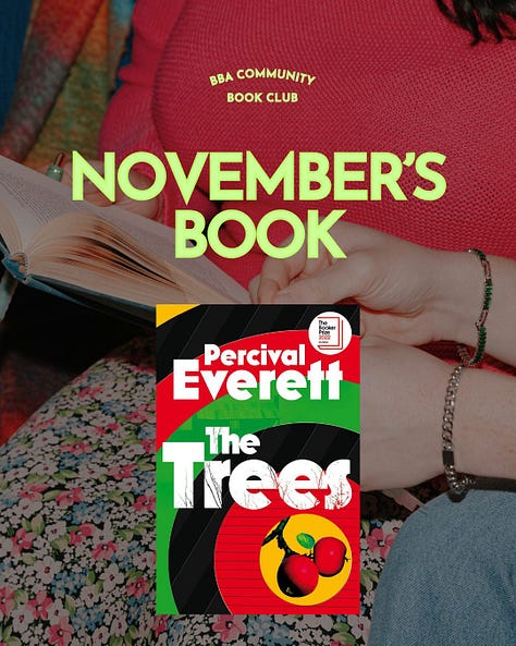 Come join our last book club meet-up of 2025! We’re currently reading The Trees by Percival Everett. (Free for BBA Plus members.)